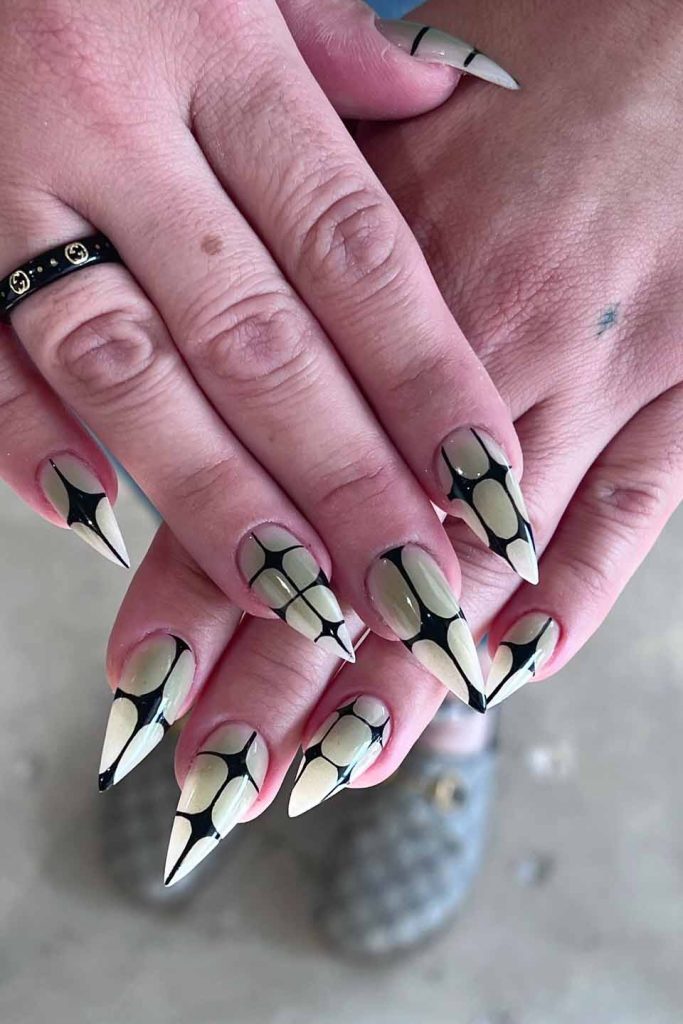 Asymmetrical nails are daring and playful. They use uneven lines and bright colors like black or hot pink. This style looks best on long nails and is perfect for concerts or festivals. I wore it to a show, and they stood out all night. Add a gel coat to help them stay shiny and strong.
