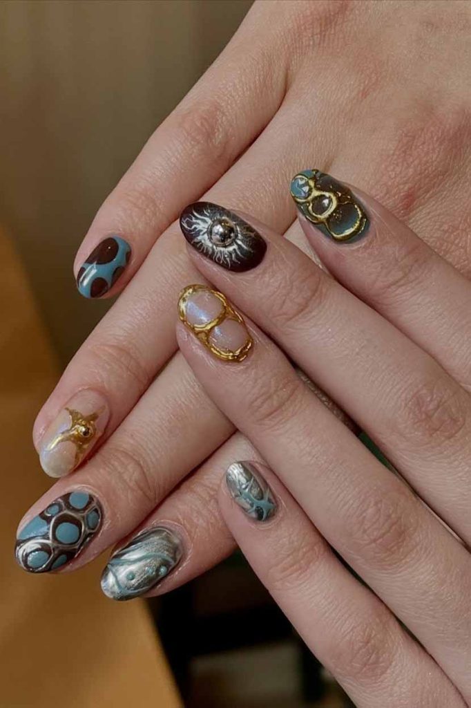 Mosaic nails look like small art pieces. They use bright colors like turquoise, yellow, and white. This design fits medium nails and is perfect for art lovers or weddings. I wore it to a garden party, and my nails looked amazing. Add a clear top coat to keep them shiny and fresh.