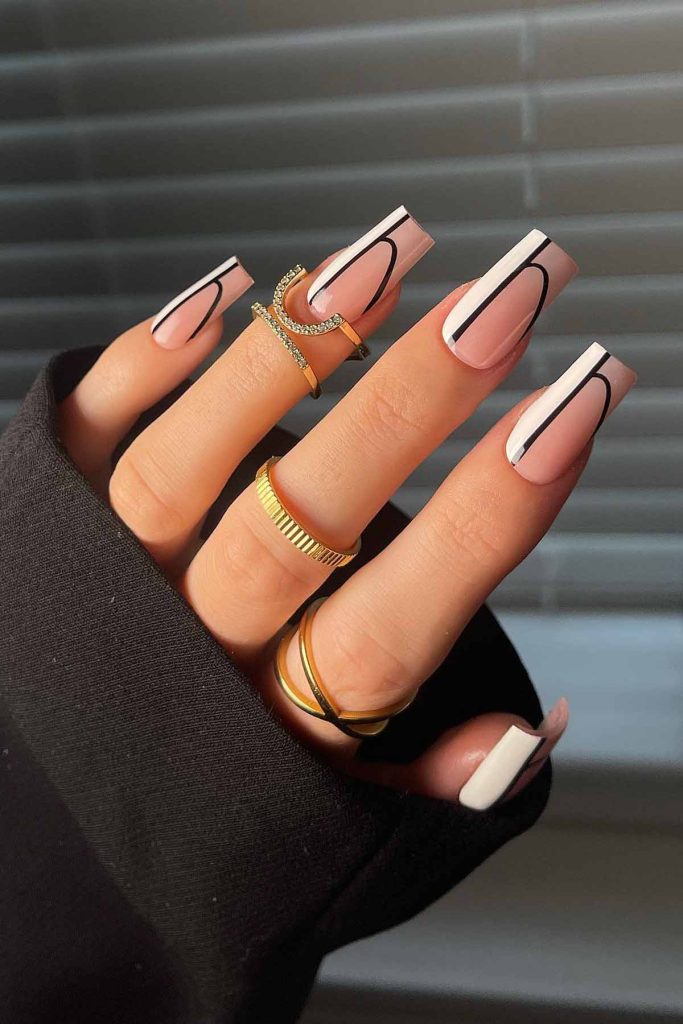 This nail design is clean and stylish. It has smooth lines and a fresh look. It fits short or medium nails. The lines can be black, white, or shiny on a clear base. It’s great for work or brunch with friends. When I wore it to a meeting, I felt calm and happy. This look is simple to care for and matches any outfit.
