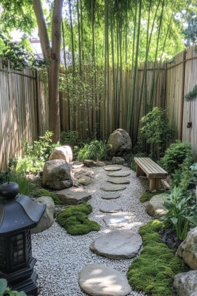 This style looks like a Zen garden. It uses sand and smooth rocks. It feels very calm to see. Do not use a house here. Use a small stone tower or a bench. This garden helps you feel less stressed. It is good for your mind. Keep it very simple. In this style, less is better.