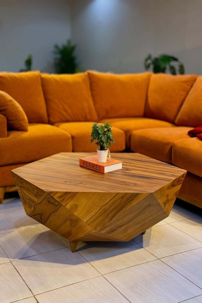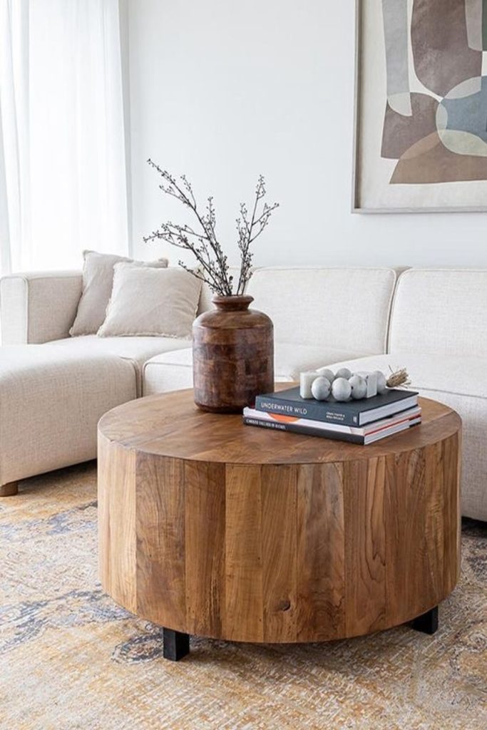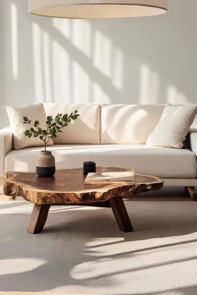 This table made me love wood years ago. Use wood planks in a stack. Sand them to keep that old, great look. Then, add black, thin metal legs. This gives a cool, old-time feel. The low shelf is good for soft rugs or books. I like how the wood makes a plain couch feel warm. Pro tip: Use clear coat to seal it. This stops spills from hurting the wood!
