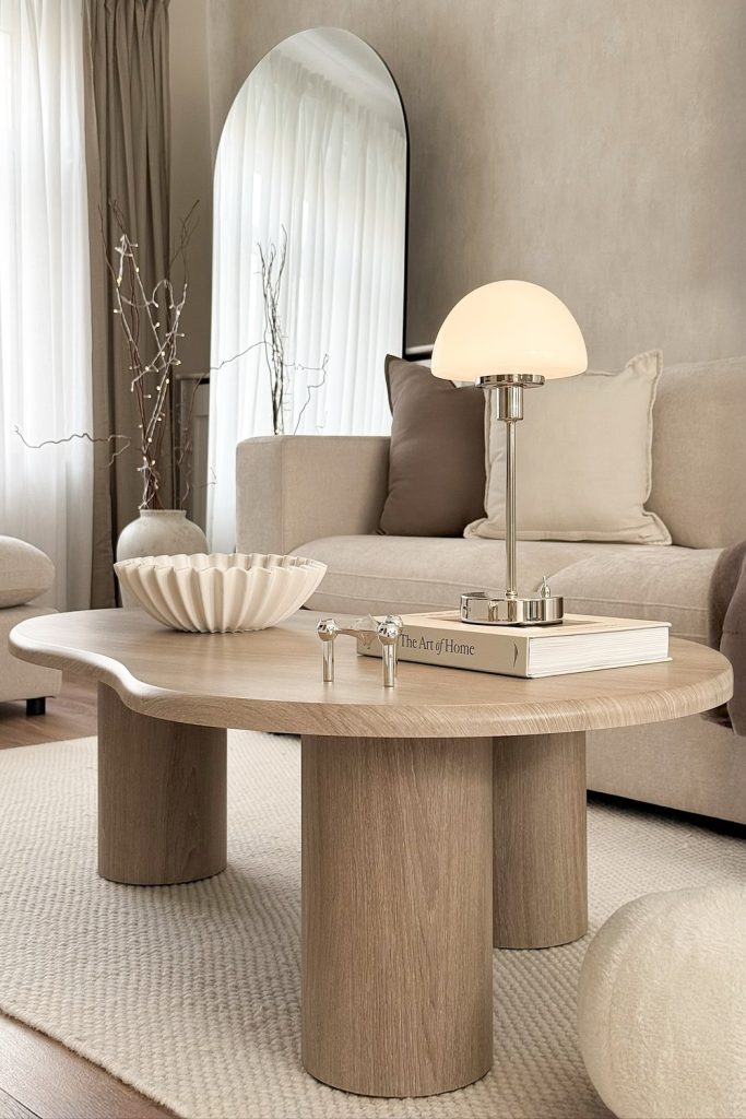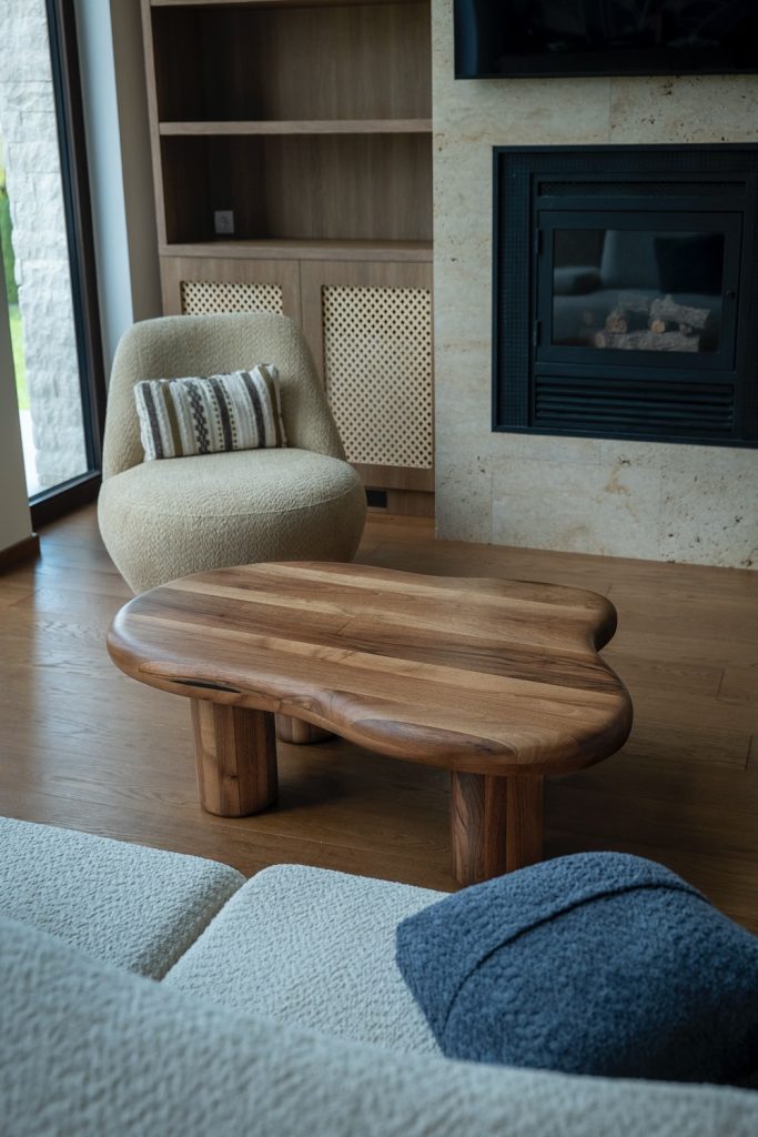 Clean lines, light wood paint, and soft, round sides. This is calm, light style. They sanded this wood until it felt like silk. It takes a lot of time, but it is worth it. They used thin, low legs. Now your room feels twice as big and calm. This is best if you think “less is more.”