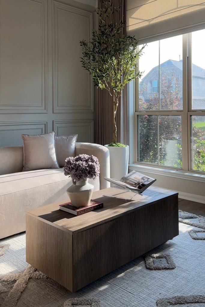 Long and low with a tufted linen cushion—basically a coffee table that moonlights as extra seating. Perfect for big families or when you’re that friend who hosts everything. The wood base keeps it grounded and casual-cool.