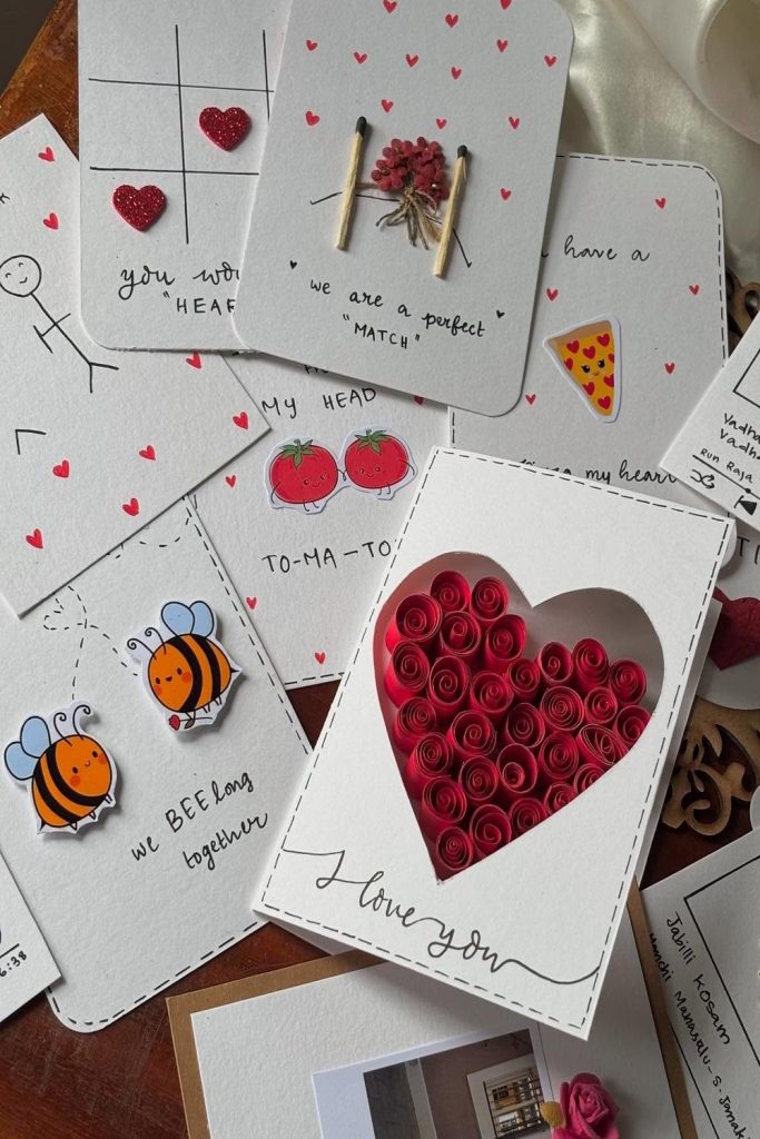 For those who prefer a more modern, year-round feel to their floral projects, these rolled paper succulents are an amazing DIY craft idea. The style is geometric and contemporary, using various shades of green cardstock to build up a multi-layered, dimensional succulent shape. It’s a fantastic alternative to traditional roses for valentines day cards handmade flowers. My expertise tip for this project is to use a fine-tipped tool to roll the strips very tightly at the base, and then gently fan out the outer “leaves” to give it that natural, fleshy look. Gluing them into a tiny pot shape on the card instantly creates a little desert garden that’s both stylish and sweet.
