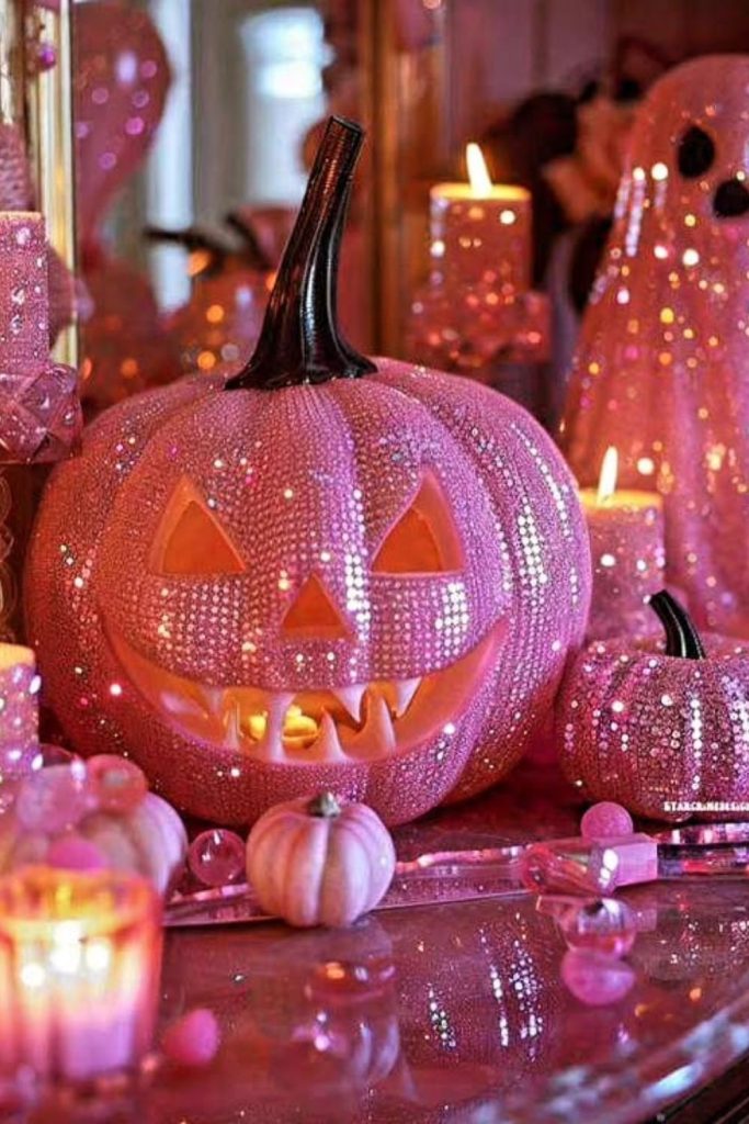 1. Blush Pink Pumpkin Glow for Cozy Halloween Vibes