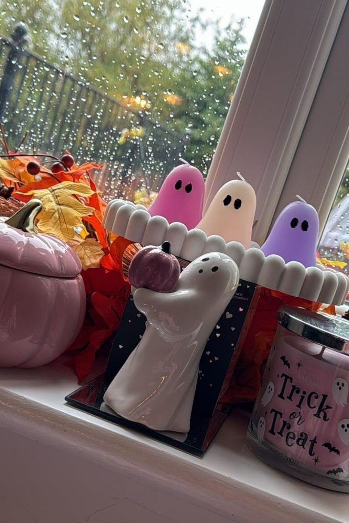 This window sill shows pink Halloween magic. Blush mini pumpkins, pastel candles, and a wooden tray make it cozy and festive. Soft pink curtains add warmth. It fits 2025’s cozy minimalist style. It is great for adding spooky charm to small spaces. Add fairy lights for extra glow. Want to style your window sill? Pin this idea. Share your tips below. Let’s make a spooky yet stylish window display together.
