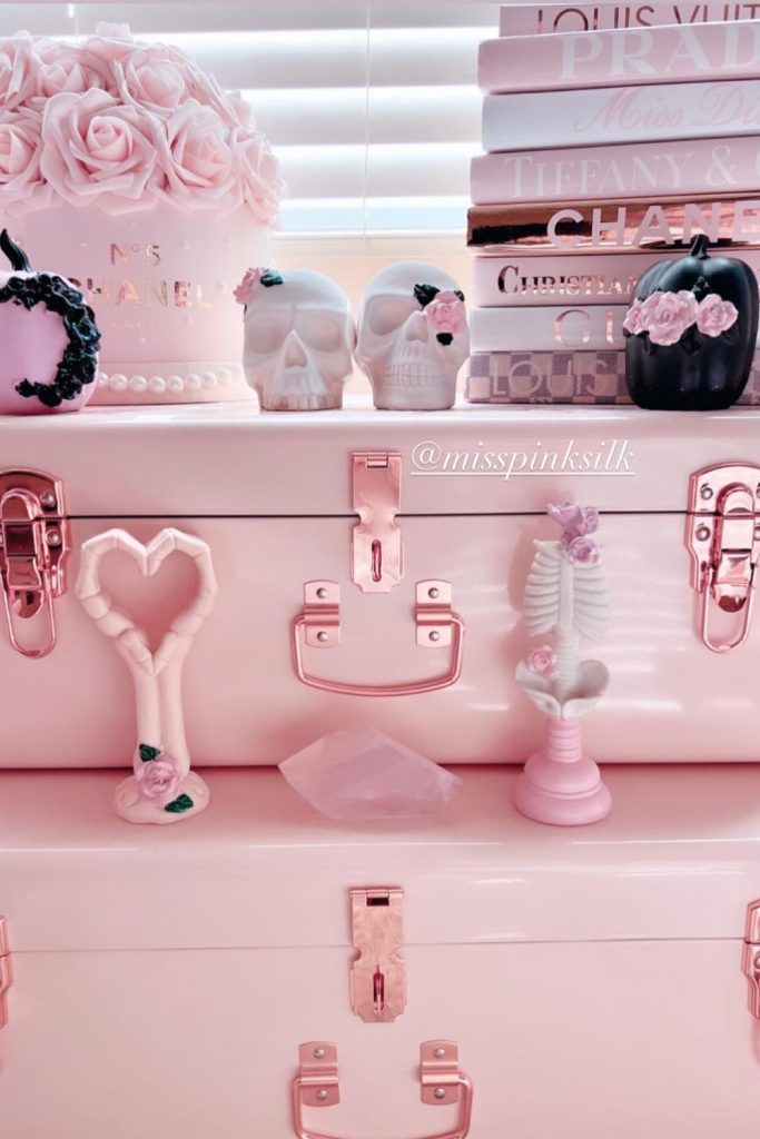 This kids’ corner is full of pink Halloween fun. Blush stuffed pumpkins, pastel skull pillows, and a woven rug make it playful and safe. The soft pink tent adds coziness. It fits 2025’s family-friendly trend. It is perfect for little ones to enjoy spooky season. Add fairy lights for extra magic. Want a kid-friendly Halloween setup? Pin this idea. Share your family decor tips below. Let’s make a spooky and fun space together.