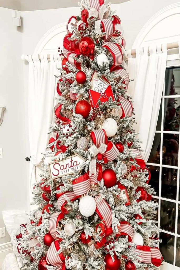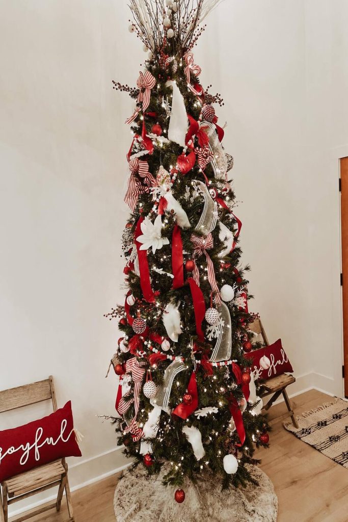Want a tree that pops? Go with red and white. It looks bright, fun, and full of holiday joy. This style works with any room, big or small. Keep it simple with wood toys and soft ribbons. These colors make your space feel warm and cozy. Looking for a fresh style this year? Try these red and white tree ideas. And don’t forget—share your own tips too!
