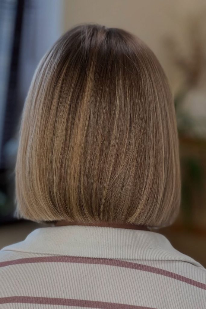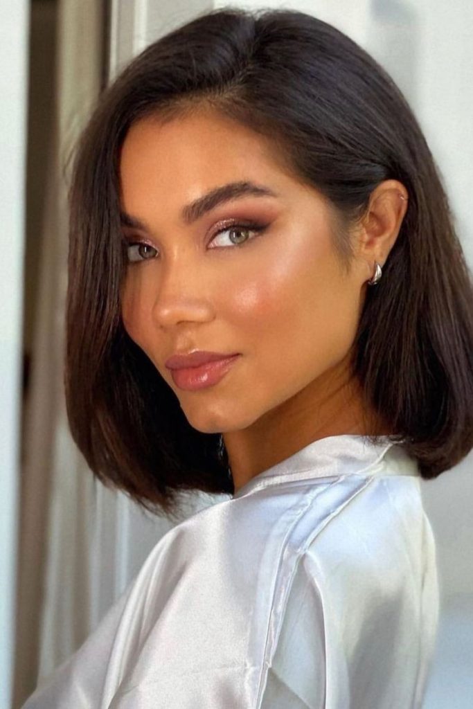“This smooth bob has soft edges for a pretty, clean look. It suits round and oval faces. It works well with straight or curly hair. I wore it to a Christmas party, and it looked so nice. Use a flat iron and shine spray for a glossy glow. Try this short bob and feel the charm. Pin it and share your thoughts!”