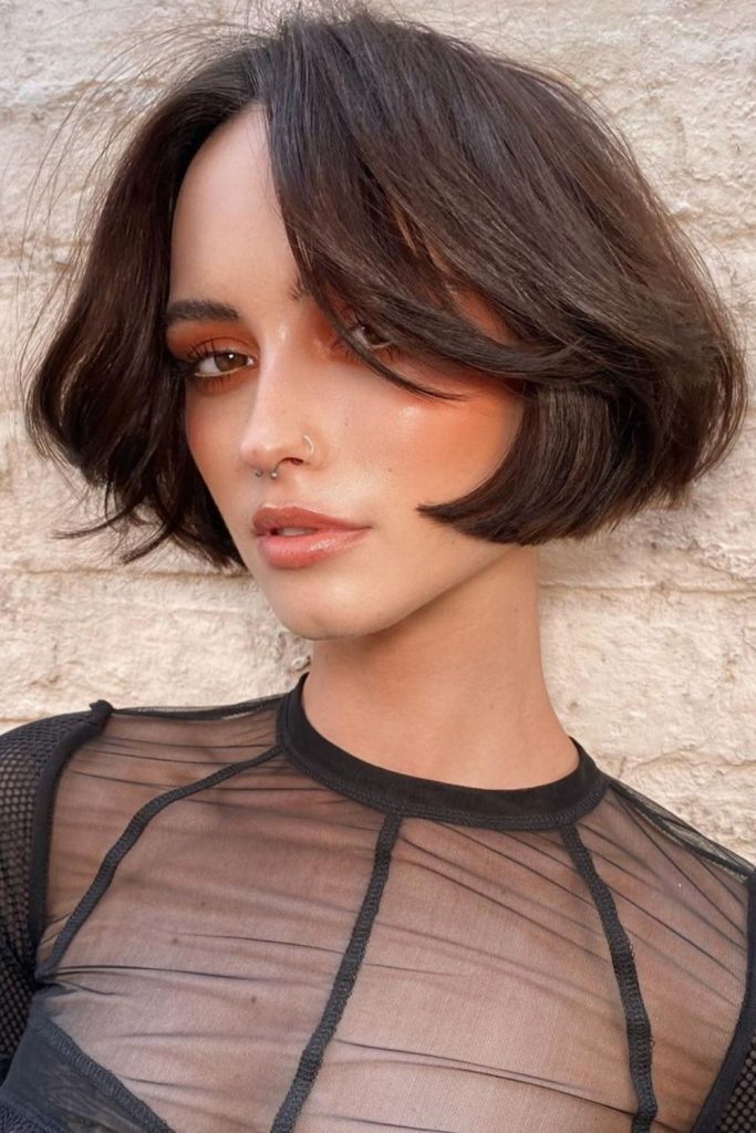 Curtain bangs are in style right now and look perfect with a short bob. The soft, face-framing strands give off a romantic and classic look. This cut fits both straight and wavy hair and flatters oval or long faces beautifully. I tried it on a date and got so many compliments—it felt fun, fresh, and stylish. Use a round brush and a little hairspray for that soft swoop. If you want a new, trendy cut for 2025, this one is perfect to try.