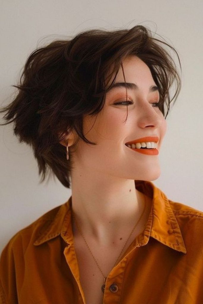 “The pixie bob is a fun mix of a pixie cut and a bob. It’s short, playful, and full of charm. It fits straight or wavy hair and flatters oval or heart faces. I tried it last spring for a fresh change, and it felt amazing. Use a texture cream to give it a bold, messy touch. This easy and classy style is for brave hearts. Try it and tell me how it makes you feel!”