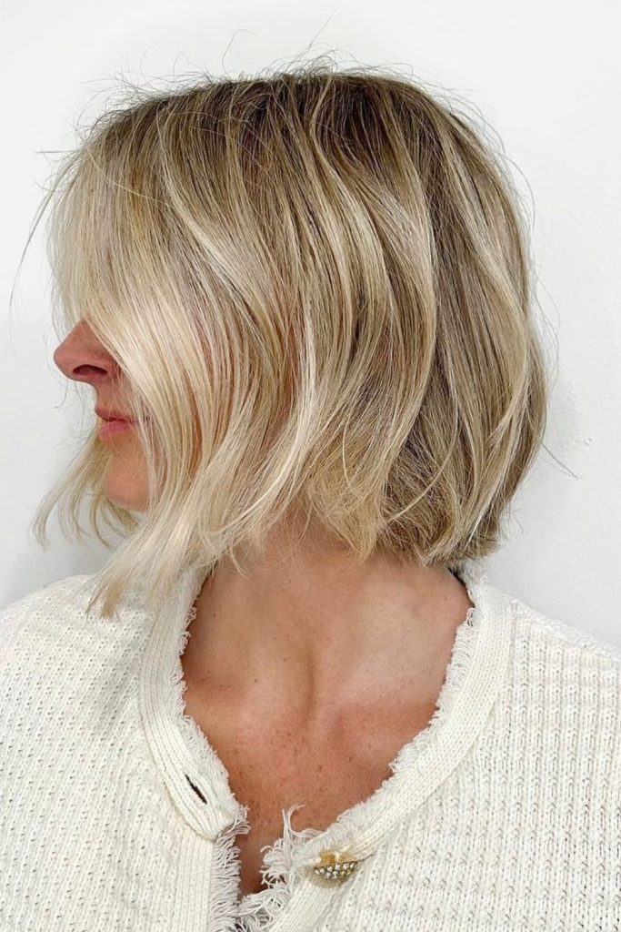 The shaggy bob is a fun, stylish cut with a retro feel. Its messy layers add bounce and give you that cool rock and roll edge. It works well on round and square faces and fits any hair type. I wore this look to a concert, and it stayed perfect all night. Use a texturizing spray and scrunch your hair for an effortless style. This easy, trendy bob is a Pinterest hit—save it and take it to your salon!