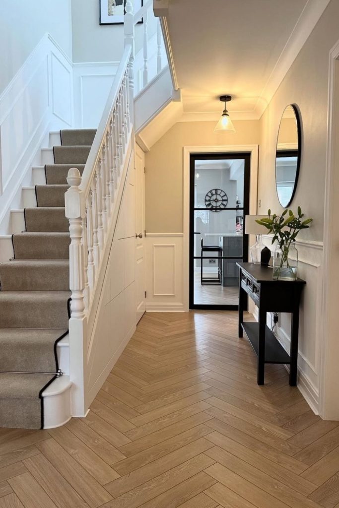 “These stairs make small spaces look big and bright! The light ash steps feel open and fresh. A black rail adds a nice contrast. This look fits the cozy 2025 trend. It fills a tiny home with light. Add soft, pale fabrics to match. What’s your favorite Scandi decor tip? Share below and save this idea for fall!”
