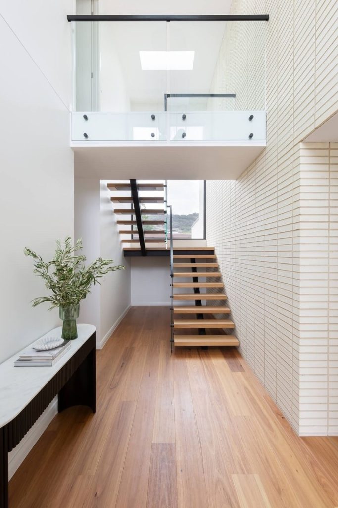 These modern stairs are great for small homes! Glass panels replace railings, letting light spread through the room. The walnut steps add a warm, cozy touch, perfect for fall. I love how clean and welcoming the design feels. It’s eco-friendly and stylish too. Place a tall plant by the stairs for a fresh style. How do you keep your space bright? Share below and save this for later!