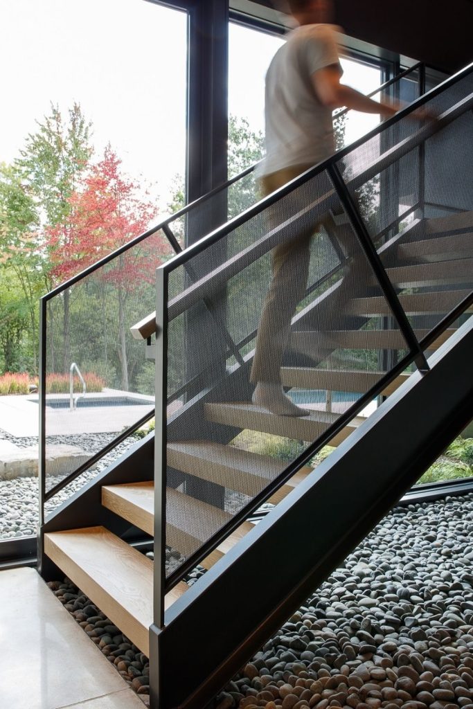 These floating stairs are perfect for small homes! Set on one steel beam, they seem to hover in the air. The glass rails keep the space bright, and walnut steps add warmth. The design feels open and fresh, matching today’s clean look. I love how simple and cozy it feels. Add a large light above for some style. How would you decorate these stairs? Share below and save this idea for later!