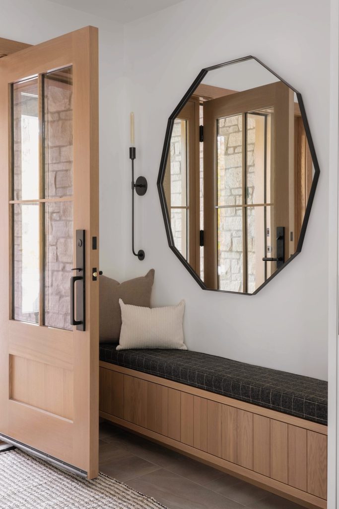 One huge frameless leaning mirror, a slim console, and almost nothing else. The negative space is the star here. Proof that sometimes the most impactful entryway decor is barely there at all.