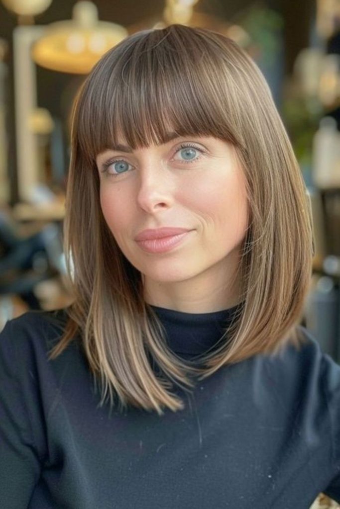 Try a bob with bangs for a fresh look in 2025. The slightly longer style with soft, curved bangs flatters almost every face shape. I wore mine to a meeting and felt confident and chic. Use a round brush as you blow-dry to add shine and smoothness. It’s ideal if you want a simple yet classy style. Do you love it too? Share your thoughts below!
