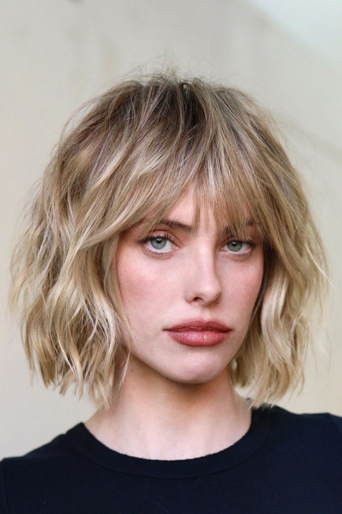 10. Wavy Bob with Wispy Bangs