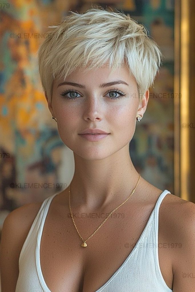14. Blonde Pixie with Baby Bangs