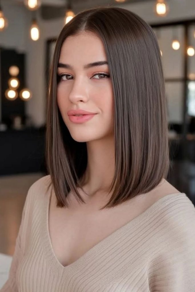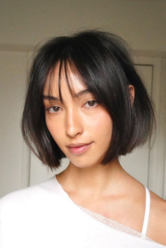 Go for a short bob with smooth, straight bangs. It’s simple, bold, and always in style. The straight cut and full bangs help you look sharp and confident. This hairstyle works well for long or square faces and straight hair. I tried it at a work event and felt fresh and polished all day. Add a touch of smoothing cream to keep it shiny. Get a trim every few weeks to keep the shape neat. Want to stand out? Try this modern bob today!