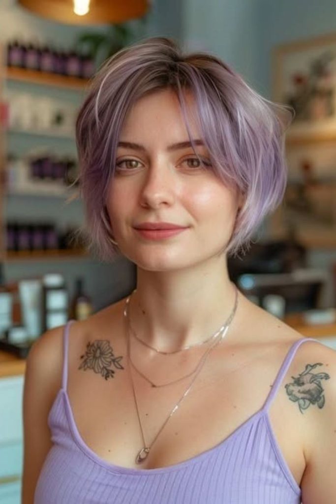Go for a short pixie cut with soft, airy bangs. It’s fun, light, and full of energy. The choppy layers make your hair look fuller, even if it’s fine. This cut works for both round and square faces. I tried it at a fair once, and it was perfect—no effort at all! Use a bit of texturizing spray for that easy, messy look. Trim it every few weeks to keep the shape fresh. Save this idea for your next haircut day!