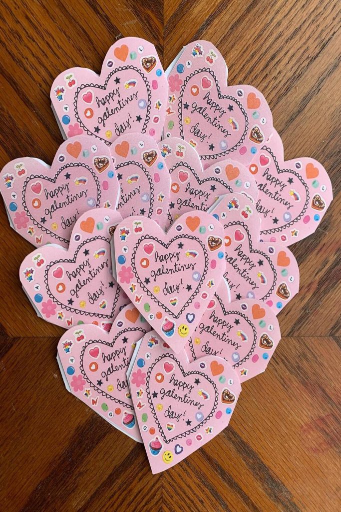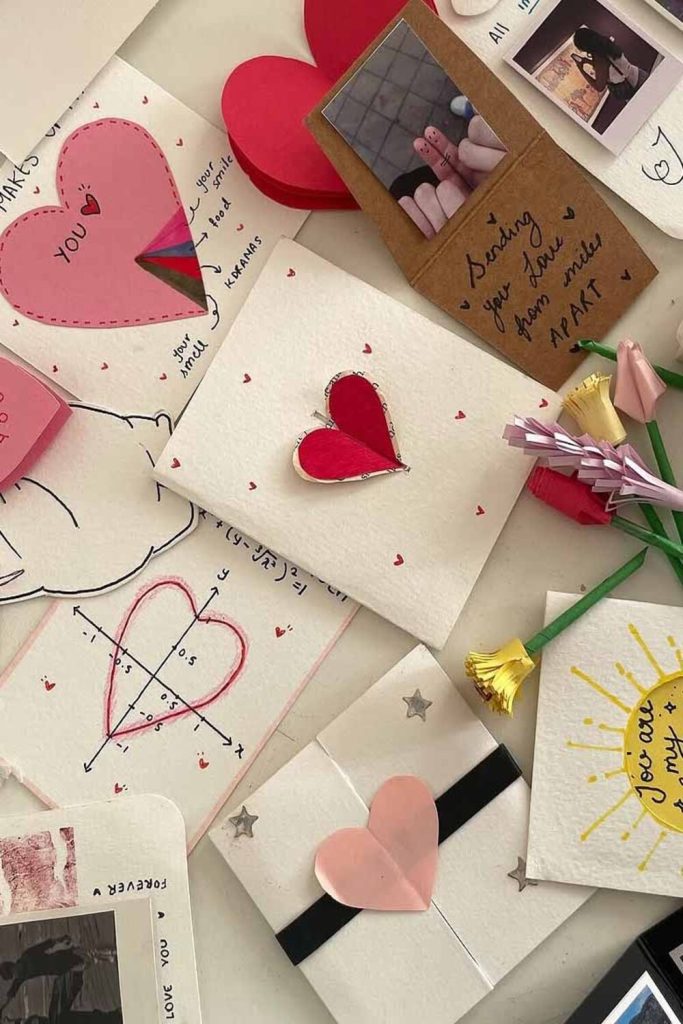 Brown paper lunch bags folded, painted with watercolor hearts, and strung up with clothespins. I wrote favorite memories on the inside of each bag—open one every day leading up to Valentine’s. My partner cried happy tears last year. Ugly bags never looked so beautiful.