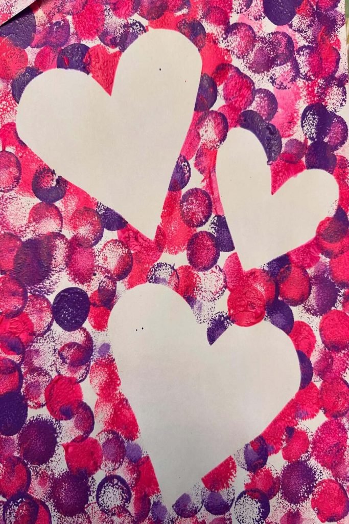 Slice a pool noodle, carve a heart shape (or just bend and tape), dip in paint, stamp away. Giant hearts with almost zero effort—genius.
