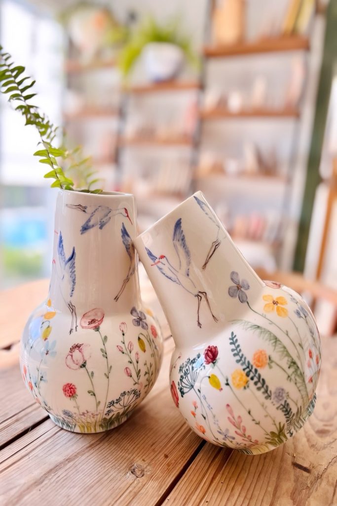 14. Ceramic Stork Vase: Nature’s Graceful Wild Bloom