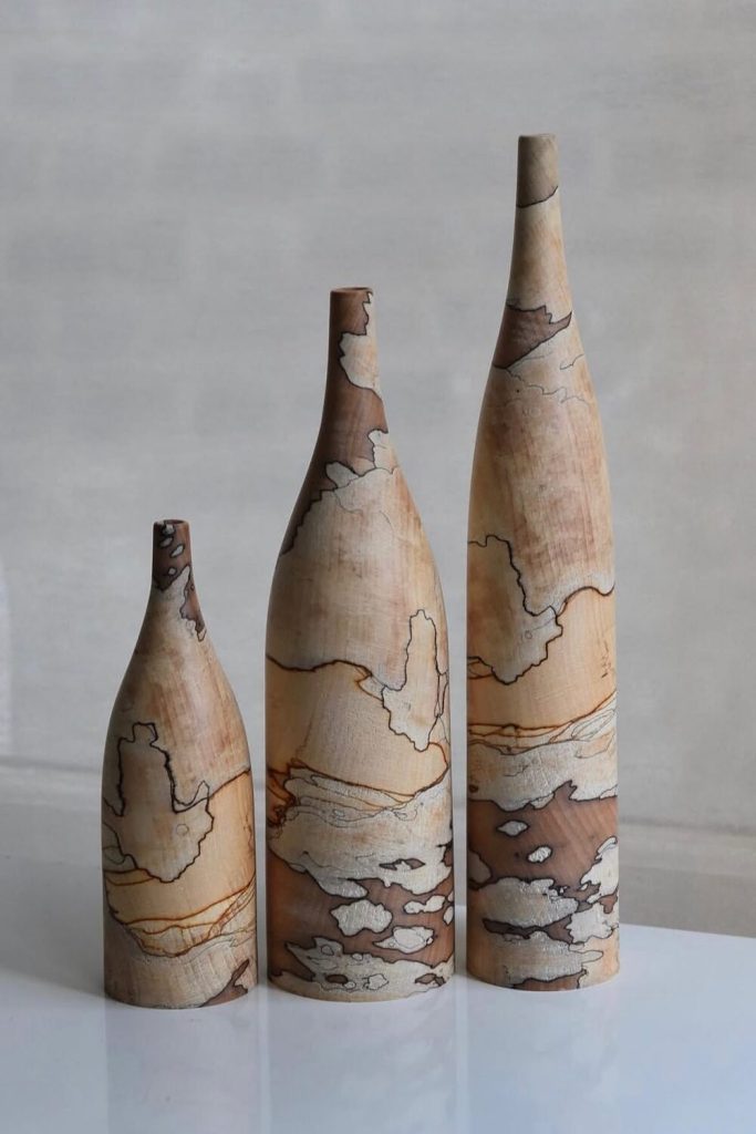 15. Patterned Beech Bottle Vase: Woodturned Sustainable Curves
