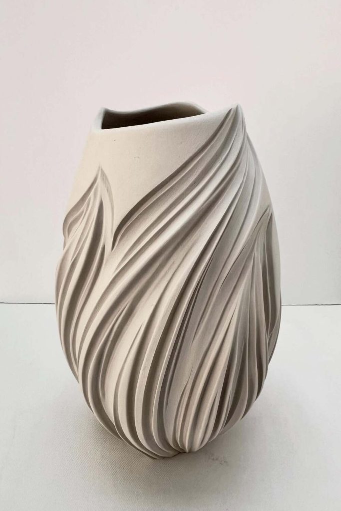19. Nature-Inspired Wrapped Vase: Fluid Carved Porcelain