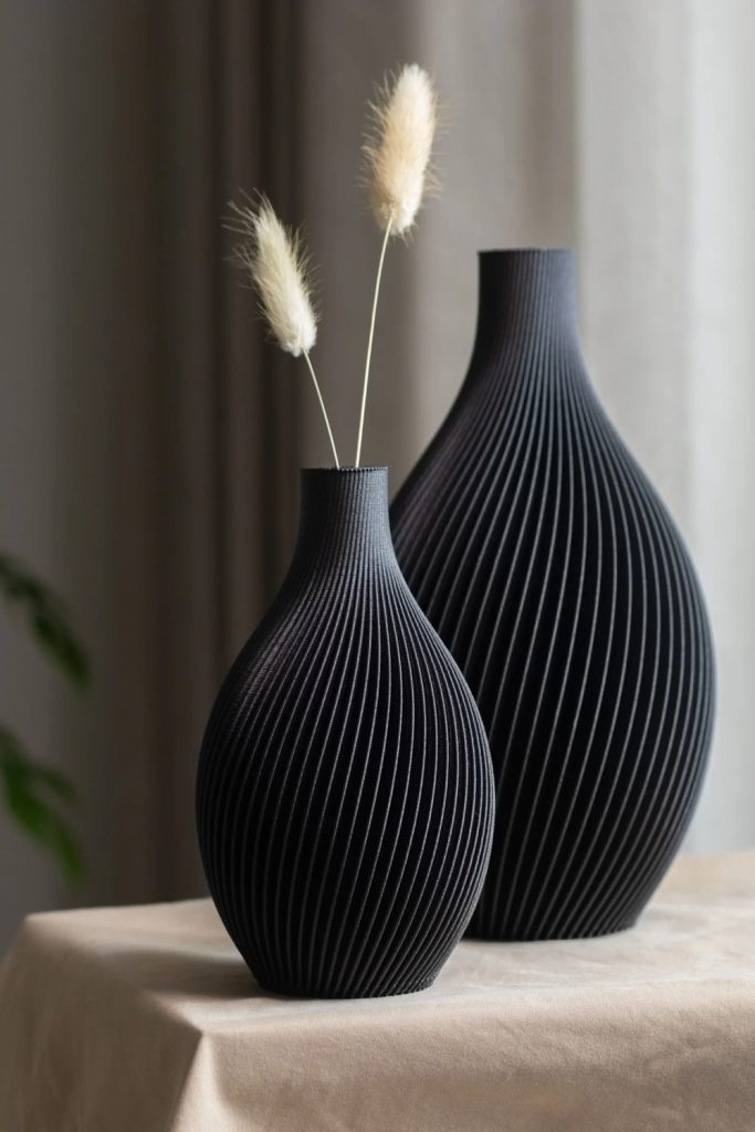 17. Sleek Black Mono Vase: Edgy Minimalist Silhouette