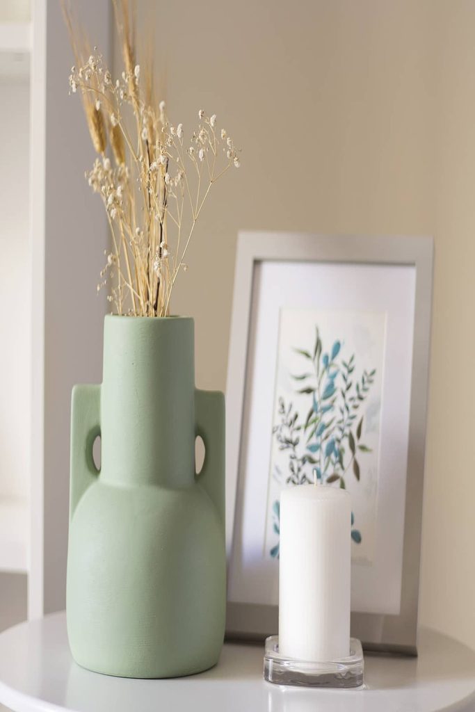 I fixed up a cheap vase with beige paint. This vase brings cozy comfort with soft colors. It looks warm and nice. I rubbed mine after paint. This made it look old. I sealed it lightly. The soft color is calming. For fixing old thrift vases, use a base coat first. This helps the paint stick. It is great for the living room. Add soft things near it. Will you fix an old thing or buy new?