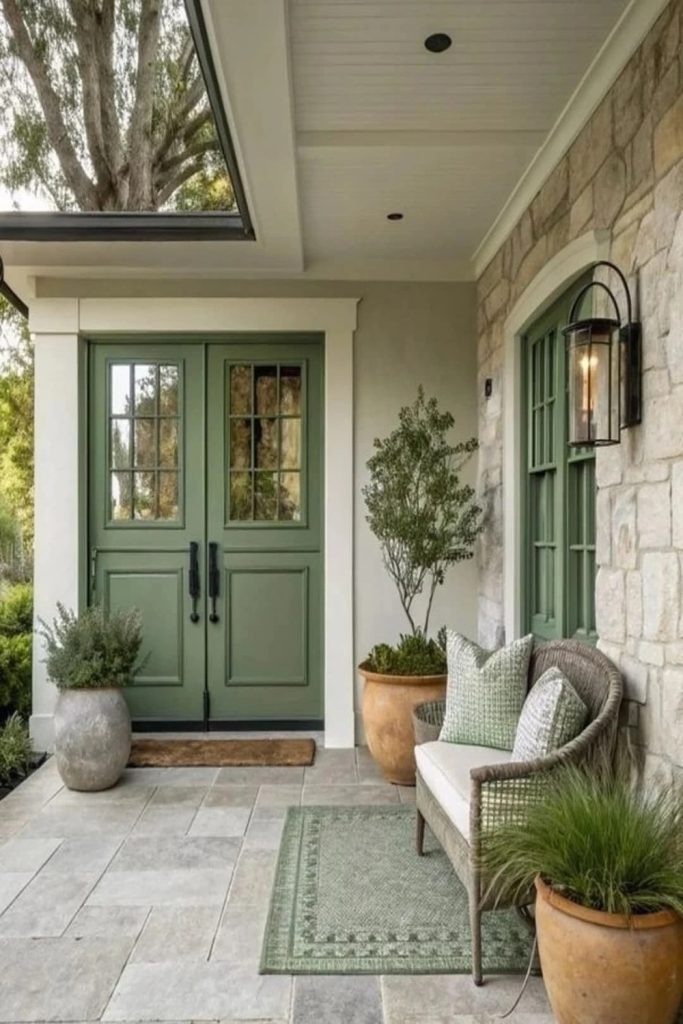 This porch is a dream! A white farm house needs a spot to watch the sun go down. Use soft chairs and a soft rug. This makes the porch feel like a room. I love sun lights that glow at night. They are good for the earth and look nice. Bring home style out-side to make your yard feel big. Do you want a porch swing or a chair that rocks?