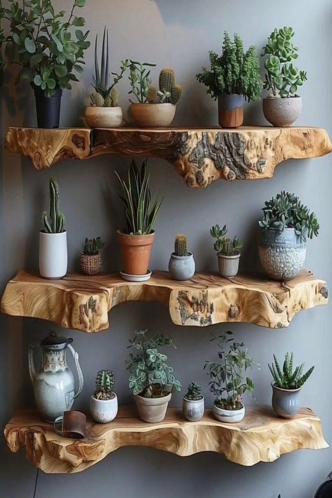 If you, like me, can’t stop buying plants, this one’s for you. Crates mounted at different depths create the most beautiful living wall. The wood tones let the greens really shine. Bonus: super easy to water because everything’s accessible.