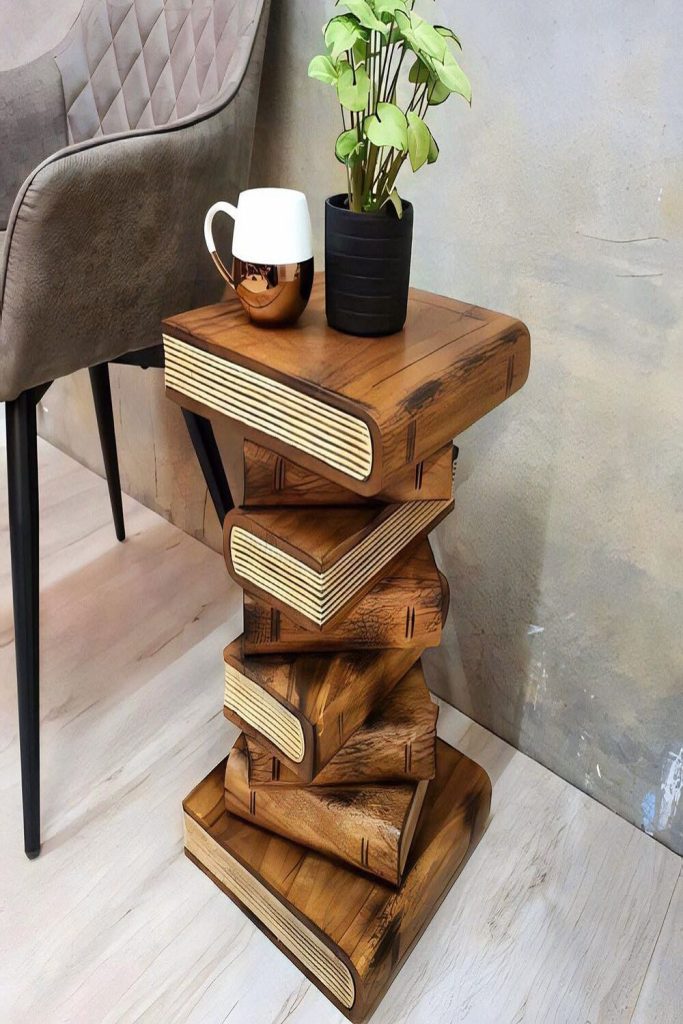 This is the best night stand idea. Take three old apple crates. Stack them up tall. Rub them down fast. This keeps the nice worn look. Put a thick, round wood top on the stack. The base crate holds books. The mid crate hides phone cords. (Cut a small hole for the wire—smart!) The top is for show. Add a lamp, a wick, and a small vase of dry plants. It looks like a high cost item. It cost under $30 at the market. This is key for small rooms. It adds charm and saves floor space.