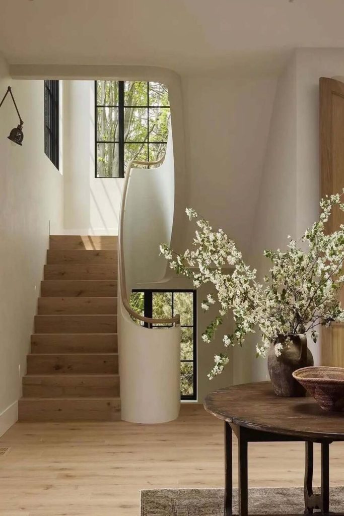 Last but certainly not least, look at these stairs! A floating wooden staircase is the ultimate statement piece. It combines “E-E-A-T” principles—showing incredible engineering and craftsmanship. It’s light, it’s airy, and it turns a functional necessity into a work of art. Even if you aren’t building a new staircase, the takeaway here is about “visual weight.” Using wood in a way that feels light and “floating” is a great way to keep a house feeling modern. It’s the perfect final example of how wood can be both a sturdy foundation and a delicate, beautiful design element.
